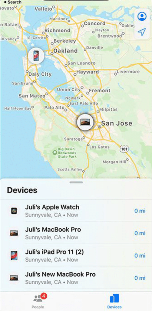 - Tap on Devices and choose the iPhone you wish to track.